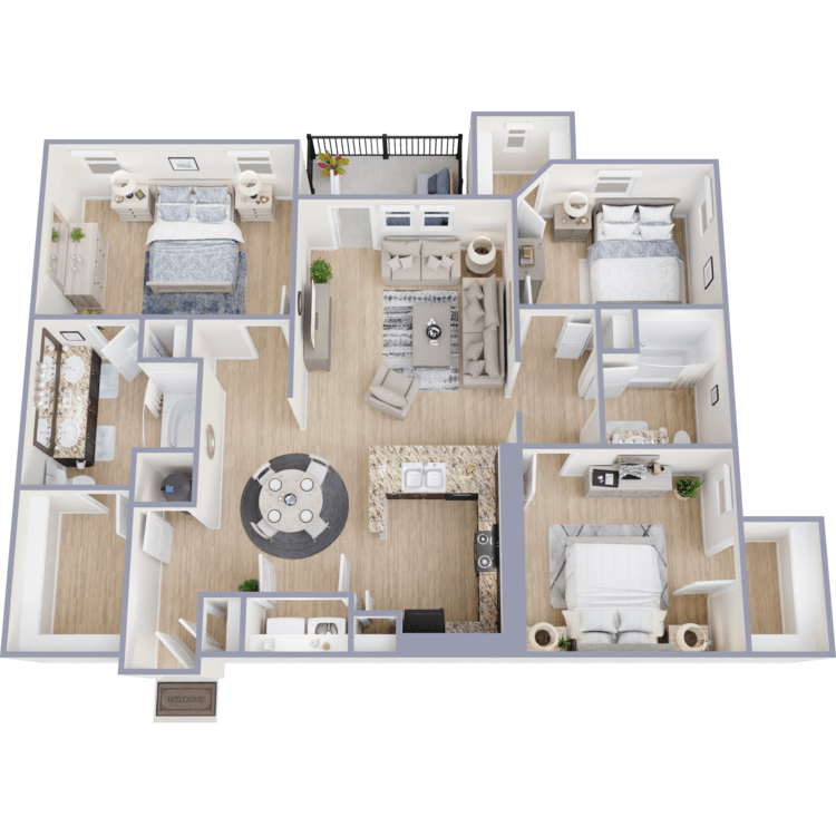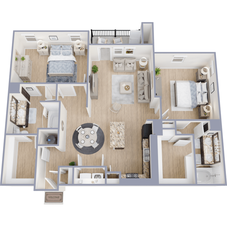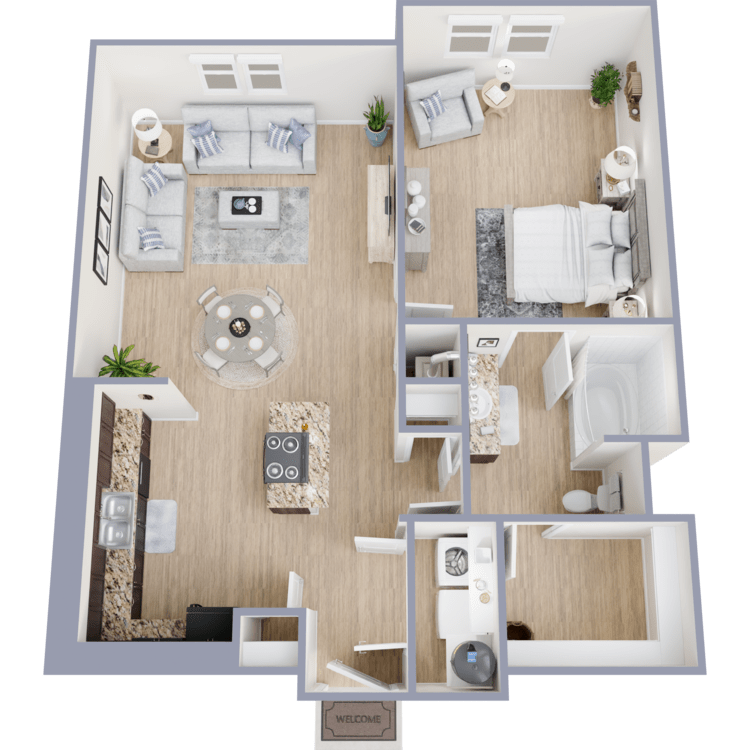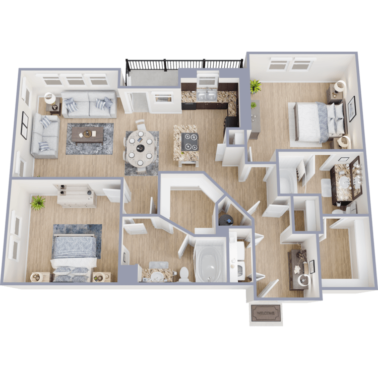 Palomar Apartments is a pet-friendly community proud to offer you the comfort you deserve. Choose from nine floor plans of one, two, or three-bedroom apartments for rent in Tyler, TX. Each apartment home features a balcony or patio, in-home washer and dryers, and walk-in closets. Select homes have built-in bookshelves, an island, double sinks in the primary bedroom, and oval garden tubs.